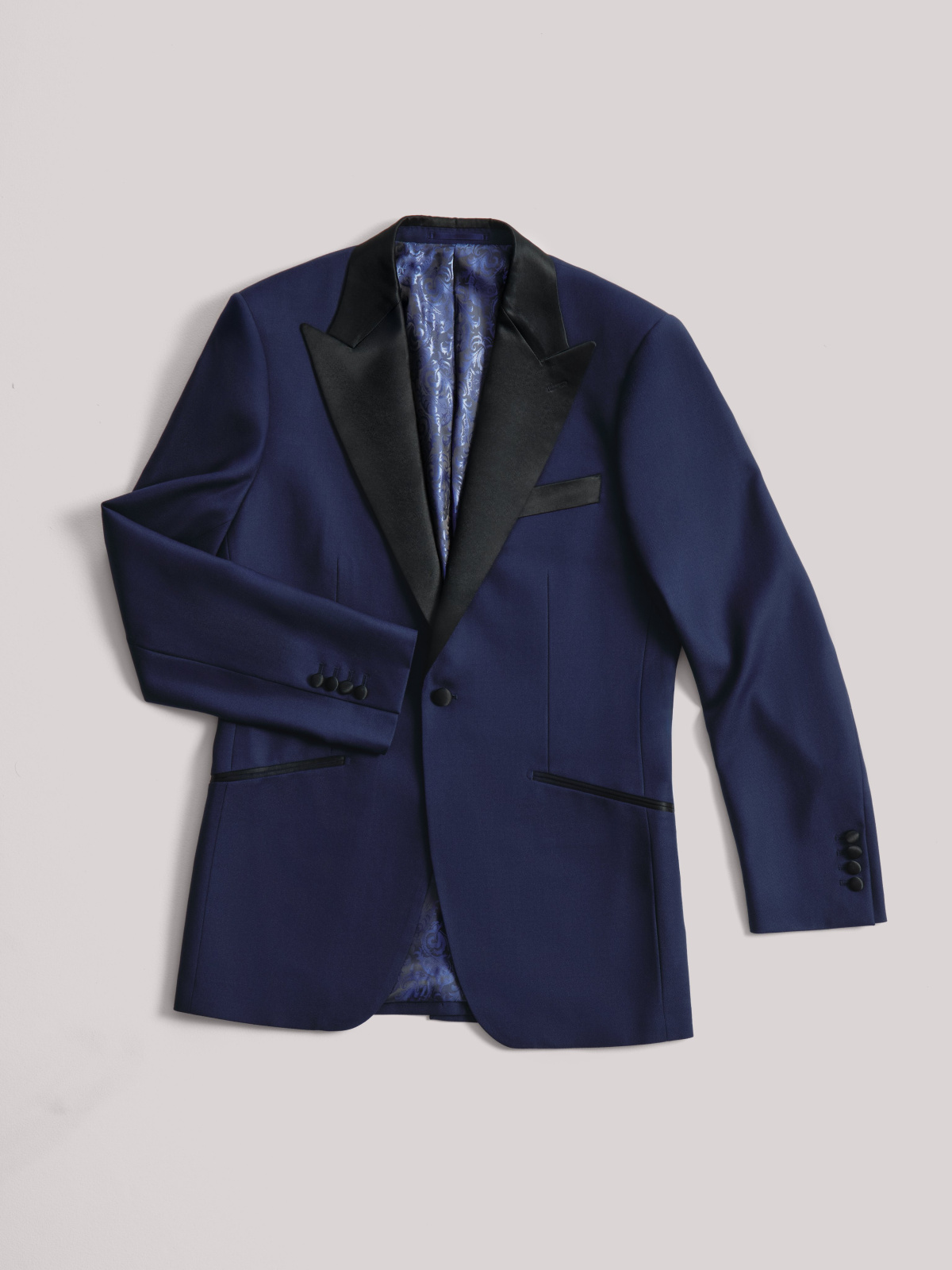 Детали пиджака: Однобортный с одной пуговицей, широкий заостренный лацкан, прорезные склеенные боковые карманы, рабочие петли на манжетах рукава, подкладка из 100% купро отделка из сатина: пуговицы, лацканы, карманы