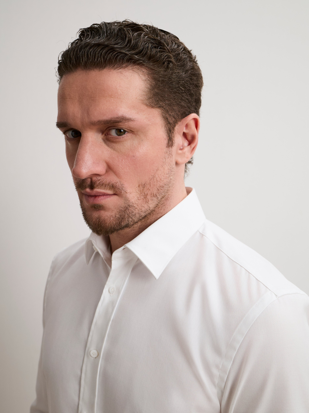 Детали сорочки: воротник classic, классическая передняя планка, манжеты под запонки