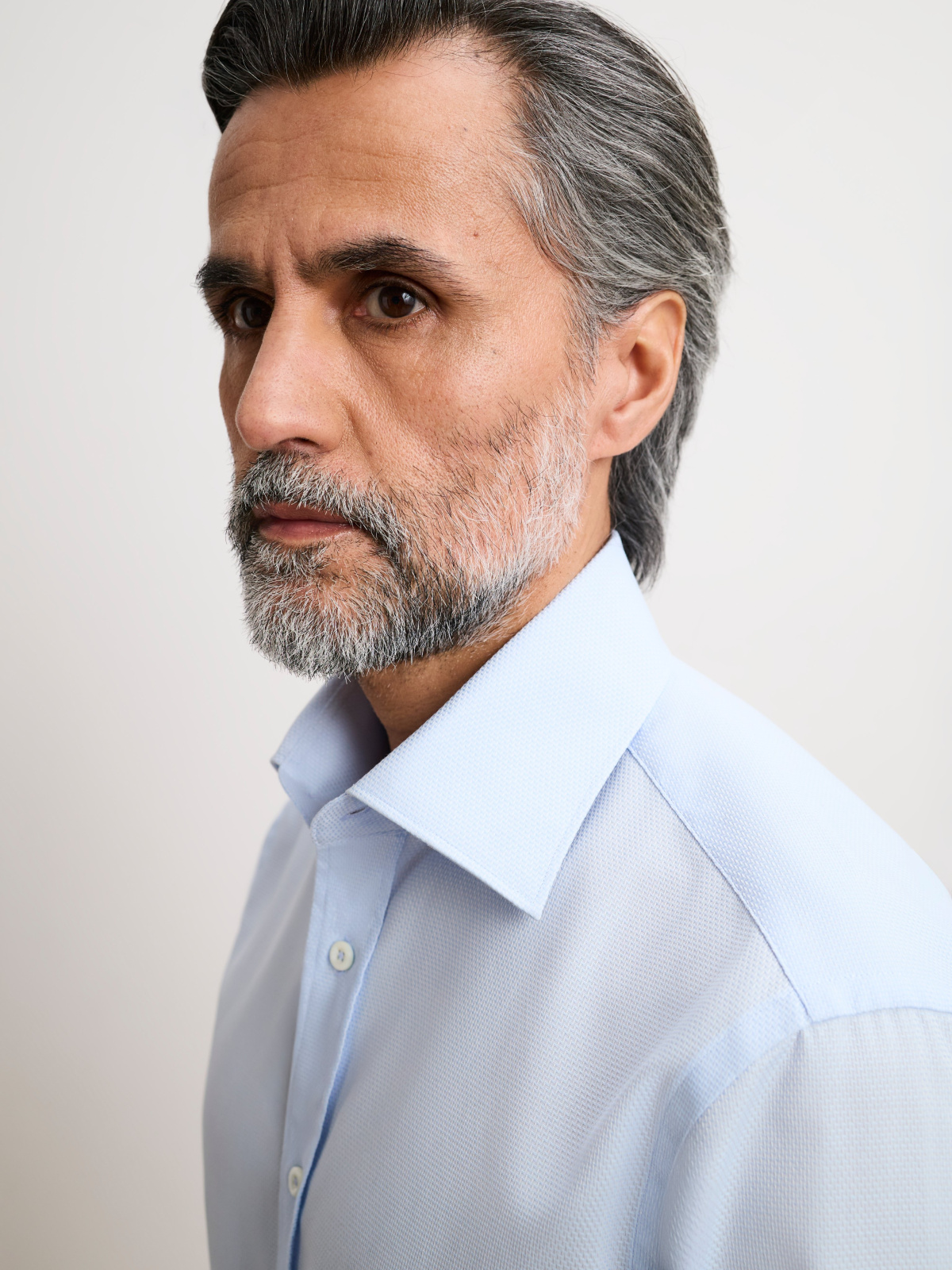 Детали: воротник semi cataway под 90 градусов, без передней планки, квадратный край манжета, выточки на спине