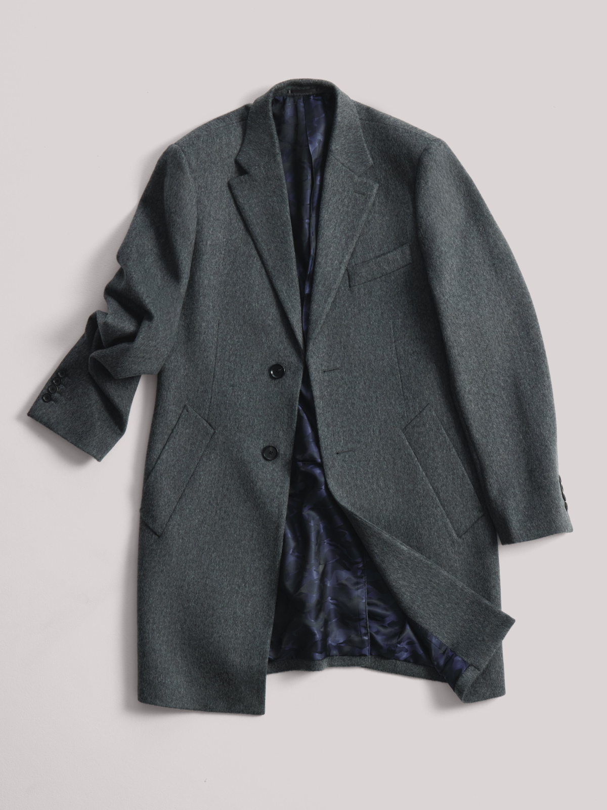 Однобортное пальто серого цвета из 100% итальянской шерсти с широкими лацканами, двумя пуговицами и скошенными карманами. Лаконичный крой и универсальный цвет — для деловых и повседневных образов. Универсальный серый оттенок легко сочетается с разными элементами гардероба, делая пальто идеальным выбором для деловых и повседневных образов в прохладную погоду.